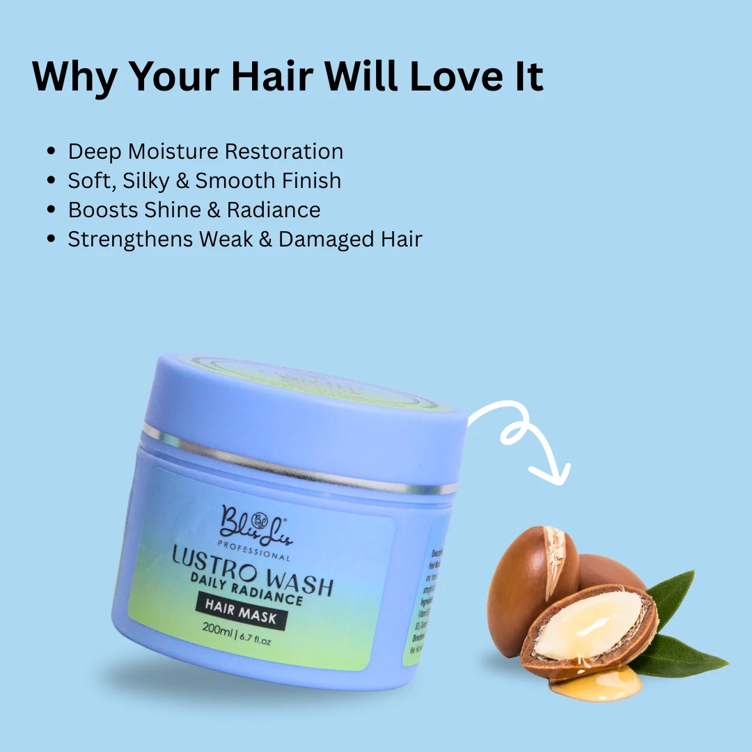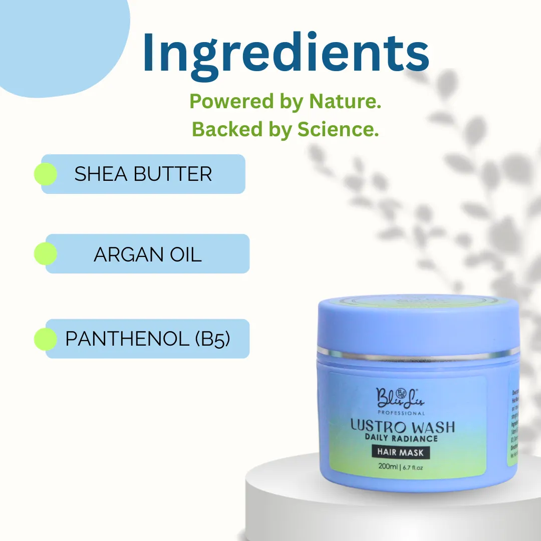 Lustro Wash Daily Radiance is the best hair mask for damaged and dry hair, designed to restore lost moisture, repair weakened strands, and revive dull hair. Its highly nourishing formula enters the hair shaft to enhance their texture, strengthen internally and intercept further drying and splitting. This rich yet lightweight mask smooths rough cuticles, reduces frizz, and enhances natural shine without weighing hair down. As it is used regularly, it makes hair soft, healthier, and physically more radiant. Ideal in attaining hairdressers smoothness and strength at home.